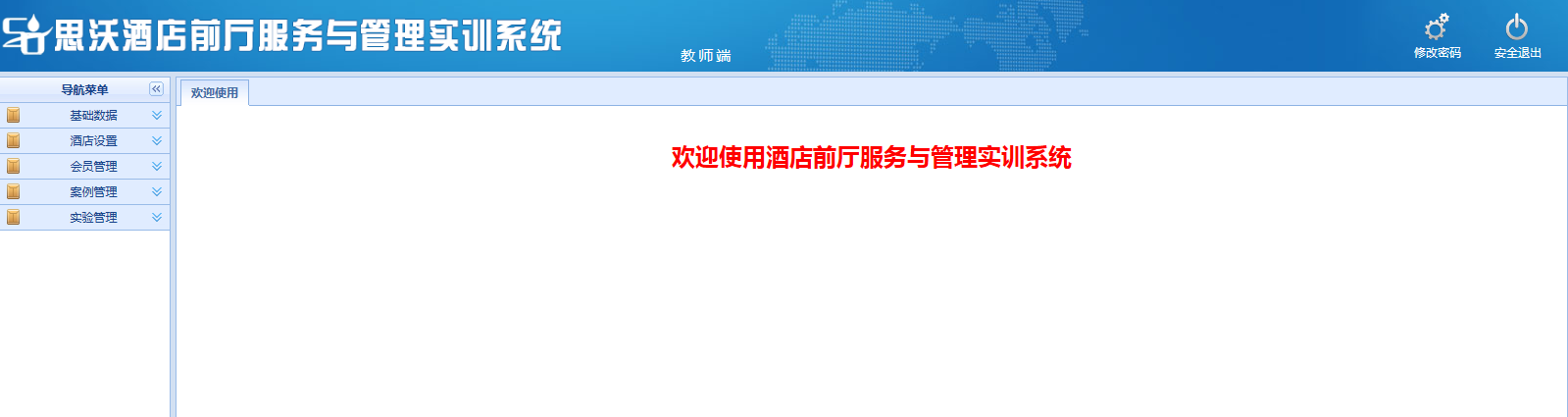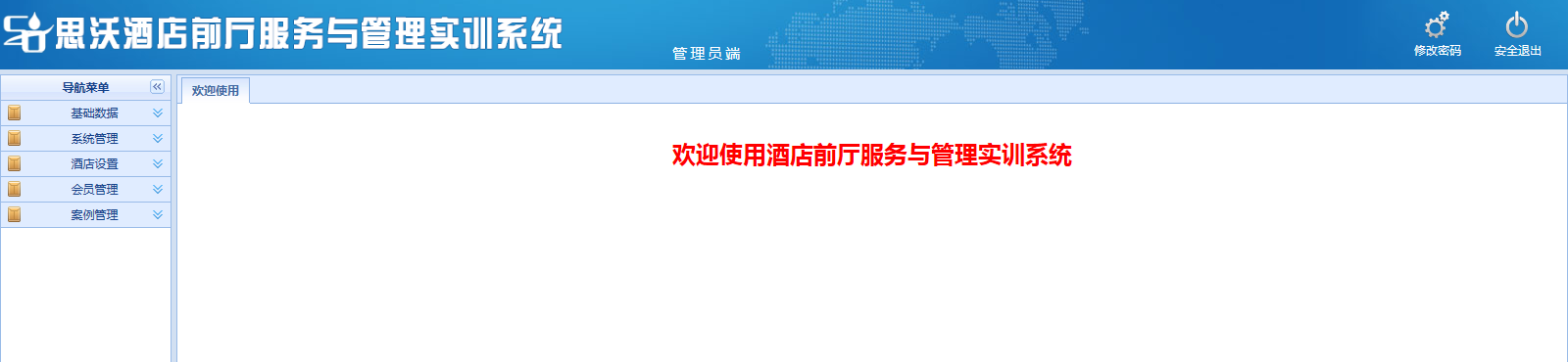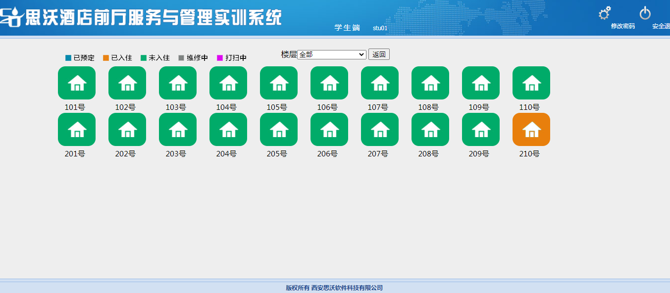 思沃酒(jiu)(jiu)店前廳(ting)服務(wu)與管理(li)(li)模(mo)(mo)擬(ni)(ni)實(shi)(shi)訓(xun)平(ping)臺(tai)系統以學(xue)(xue)(xue)生(sheng)酒(jiu)(jiu)店前廳(ting)工作崗(gang)位(wei)任(ren)務(wu)為基礎,以案(an)例動畫結(jie)合的模(mo)(mo)式開(kai)展情景模(mo)(mo)擬(ni)(ni)實(shi)(shi)訓(xun),學(xue)(xue)(xue)生(sheng)可(ke)在(zai)該教(jiao)學(xue)(xue)(xue)軟件(jian)設(she)置(zhi)的虛擬(ni)(ni)酒(jiu)(jiu)店環境(jing)中,完成預定、入(ru)住(zhu)辦理(li)(li)、續住(zhu)、退房(fang)(fang)、換(huan)房(fang)(fang)、會員管理(li)(li)、故障(zhang)報(bao)修、投訴處(chu)理(li)(li)、黑名單(dan)等相關(guan)案(an)例任(ren)務(wu)的操作。該教(jiao)學(xue)(xue)(xue)平(ping)臺(tai)軟件(jian)可(ke)以逼真的體驗實(shi)(shi)際酒(jiu)(jiu)店前廳(ting)工作的過(guo)程。本公司(si)為了更(geng)好滿足(zu)高(gao)校的教(jiao)學(xue)(xue)(xue)需求(qiu),也會根據高(gao)校的需求(qiu)提供酒(jiu)(jiu)店管理(li)(li)實(shi)(shi)訓(xun)室解決方(fang)案(an),